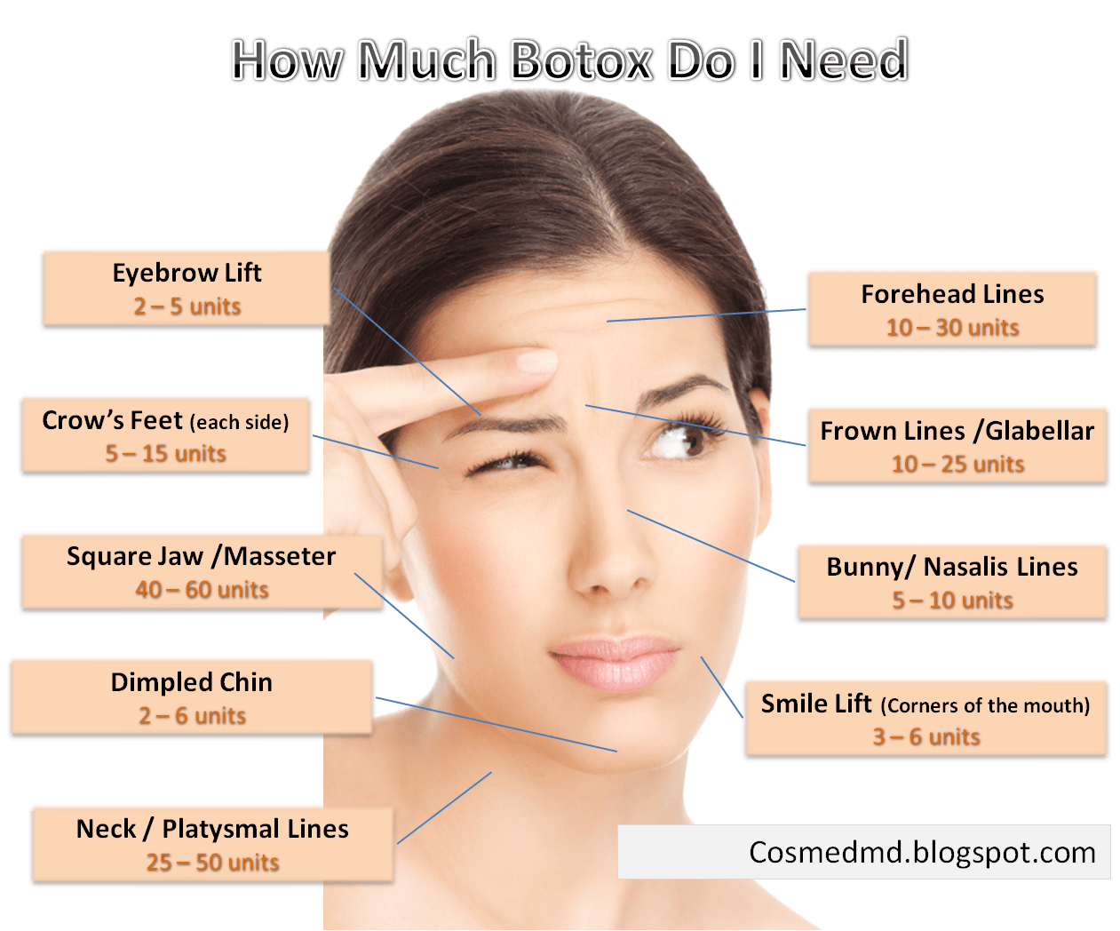 View Cosmetic Botox Injection Sites And Units Images. This chart outlines all the. 20 units per 0.5 ml. Site, # of injections, total units, pitfalls. 0.1 ml (4 units) into each of 5 sites, for a. Everything you need to know about botox.